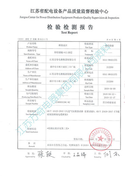 節(jié)能橋架選用不銹鋼材質(zhì),使產(chǎn)品在耐腐蝕性能、使用壽命和性價(jià)比方面都是無以倫比的。高耐腐VCI雙金屬無機(jī)涂層技術(shù)應(yīng)用在橋架表面處理上,使橋架的抗腐性能大幅度提高,達(dá)到高長效抗腐作用,經(jīng)檢測(cè)機(jī)構(gòu)廣州威凱檢測(cè)技術(shù)有限公司5000h鹽霧試驗(yàn),無腐蝕現(xiàn)象。彌補(bǔ)了熱浸鍍鋅無機(jī)涂層抗腐蝕性能不足的缺陷,大大延長了橋架的使用壽命,經(jīng)對(duì)比檢驗(yàn)數(shù)據(jù)表明,該涂層的抗腐性能是熱浸鍍鋅的50倍以上。新國標(biāo)GB/T 23639-2017《節(jié)能耐腐蝕鋼制電纜橋架》再次提高了高耐腐VCI雙金屬無機(jī)涂層的抗腐蝕性能指標(biāo),同時(shí)也提高了噴塑噴漆等有機(jī)涂層的酸堿性浸泡試驗(yàn)的標(biāo)準(zhǔn)要求。